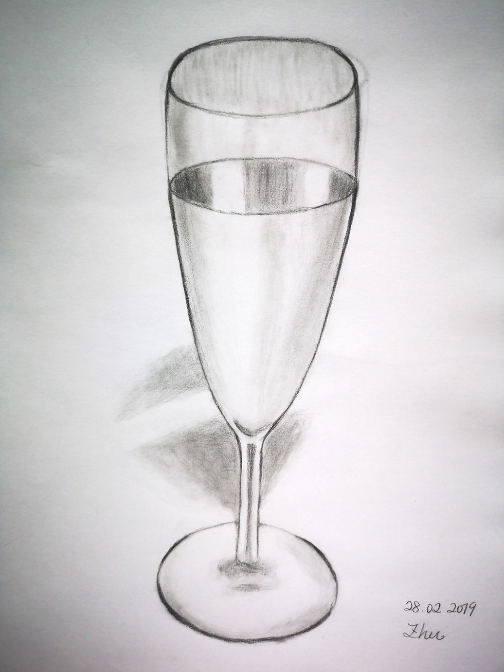 Ich habe diese Zeichnung vielmals nachgearbeitet, aber leider das Glas sieht unrichtig und unbalanced aus. Hätte jemand Tipps? Danke :)