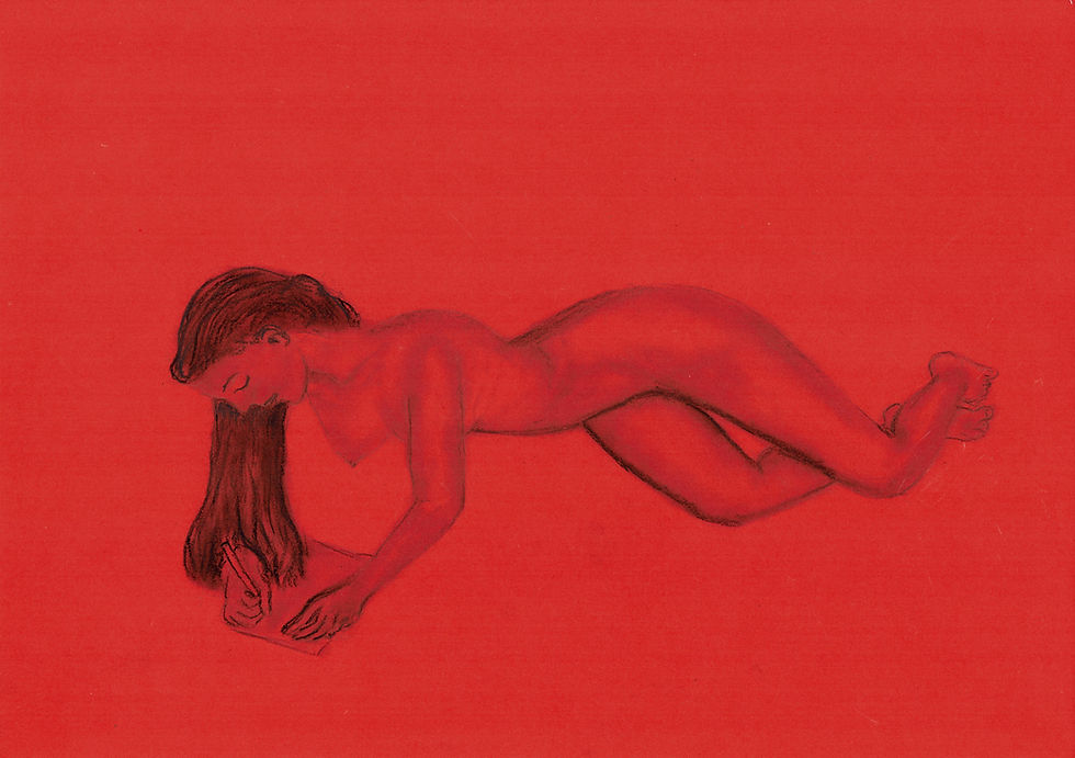 der Arm ist von den herunterhängenden Haaren verdeckt